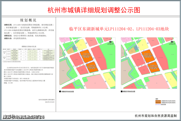 在此之前,临平区发布了东湖新城单元LP111204-02、LP111204-03地块的调整公示。