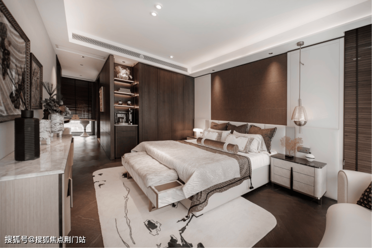而真正的主卧,净面宽更是达到豪横的约3.5米。这和奥体2000万级、同面积段的住宅大平层的主卧尺度,其实不相上下。