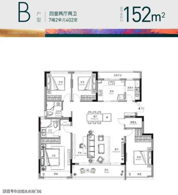 其他约116方、约129方和约152方的四房户型,实际使用率都在92%以上,全部都自带一个独立储藏间。