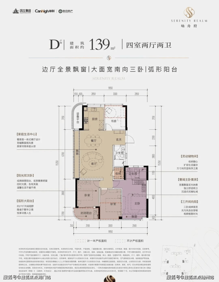 核心标签:南向四开间+阳光双套房+270°弧形飘窗