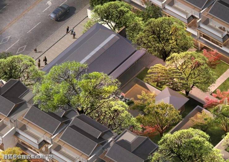 从效果图来看,金地要打造的是中式风格的排屋产品,顶层采用传统的坡屋顶形式,线条简洁流畅,展现出中式建筑的典雅韵味。整体色调以灰、棕等沉稳色系为主,穿插金色金属线条,营造改善豪宅的轻奢气质。