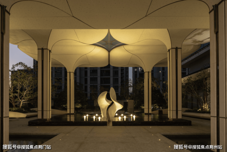 中心雕塑呼应蕙兰花瓣的灵动弧线,造型以飘逸之姿介入空间,在动与静之间建构出视觉韵律,为整体环境注入一脉流动的艺术气质。