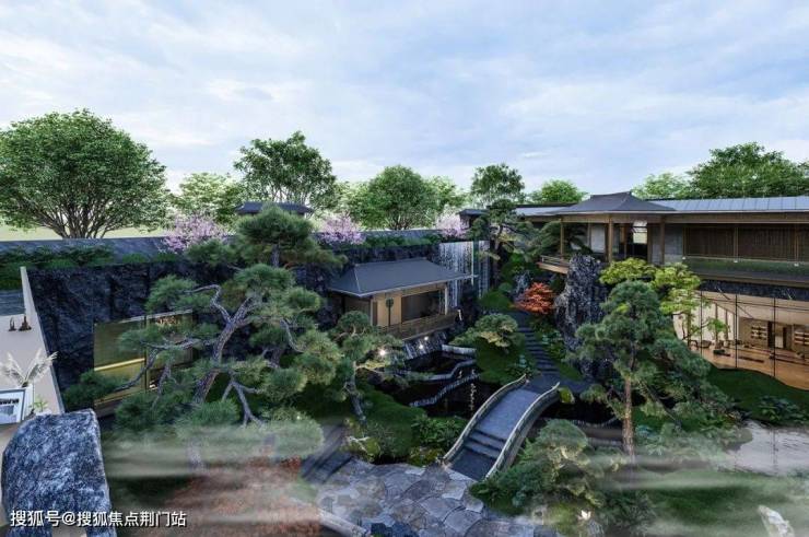【春序里】借《千里江山图》的河山之境,缩山川江河于方寸,引自然山水于庭院,在极简与写意中将宋风皇家园林逐帧具现,千年流韵、诗画江山。在这里,“宋”可以是遮阳避雨的风雨长廊、也可以是潺潺不息的叠水流觞;是错落有致的小桥石径,是临水言欢的水榭亭台;抑或是石崖飞瀑,悬亭之上拾级远眺这《千里江山》。