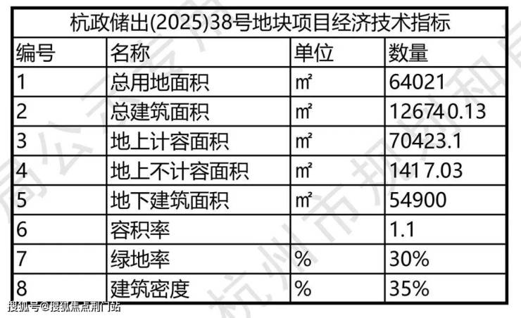 土地面积60421平米,地上建筑面积70423.1平米,容积率1.0~1.1,建筑密度35%,绿地率30%,限高24米。