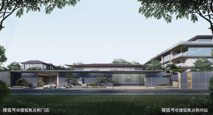 建筑立面:古今交融的诗意表达:外立面以香槟金铝板为基调,搭配蓝眼睛石材与玻璃幕墙,融合传统歇山重檐、纳福悬鱼等元素,既保留宋式建筑的对称美学,又赋予现代建筑的轻盈通透。合院组团采用三面庭院设计,L型景观面与环绕式檐廊,将超山梅影、丁山湖光引入每一扇窗景!