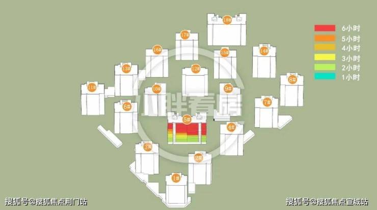 绿城知海棠的分析结果是这样:计算已考虑周边所有建筑的影响,结果表明由于周边规划尚未公示,暂且不建,楼栋仅受地块内部影响。(说明:本文日照数据基于公示规划图纸文件,使用专业制作工具完成,仅供参考)