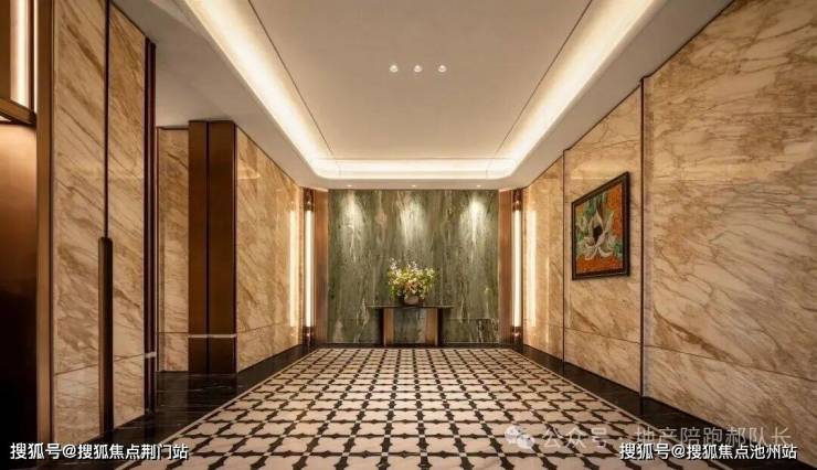 宽约78.8米、高约9.2米的大门,奥映鸣翠同款的梵高白石材,温润大气,与古铜色铝板的搭配,透出古典的韵味又不失轻盈。传统建筑穹顶元素也进行了现代化演绎,到了晚上灯光亮起,就变成了金碧辉煌的藻井。