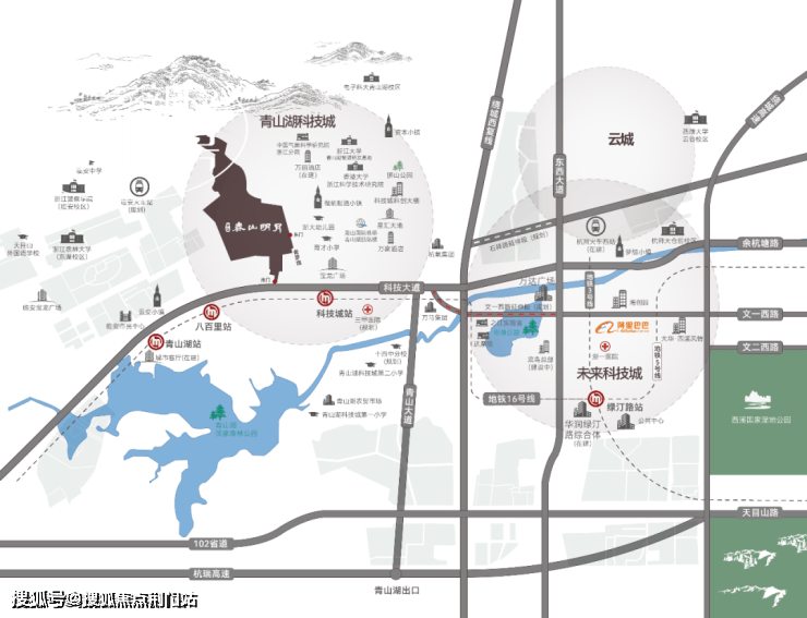 从未来科技城到春山明月大概20分钟路程,而且,未来科技城的中心其实不在阿里巴巴附近,而是要往西延伸。春山明月接壤科技大道,附近亦有城市轻轨,今天,临安撤市建区,青山湖科技城规划与未来科技城是一体的,“杭州硅谷墅区”的角色已然成熟。