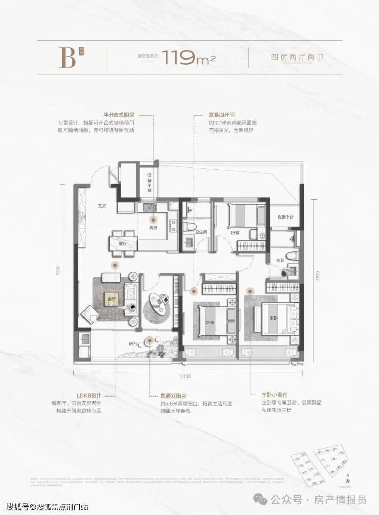 以建面约119㎡户型为例,