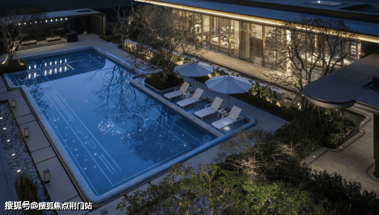 同时,还有一个度假泳池,绕着泳池四周景观廊架、躺椅、吧台等依次排开,让泳池不再是夏日专属。