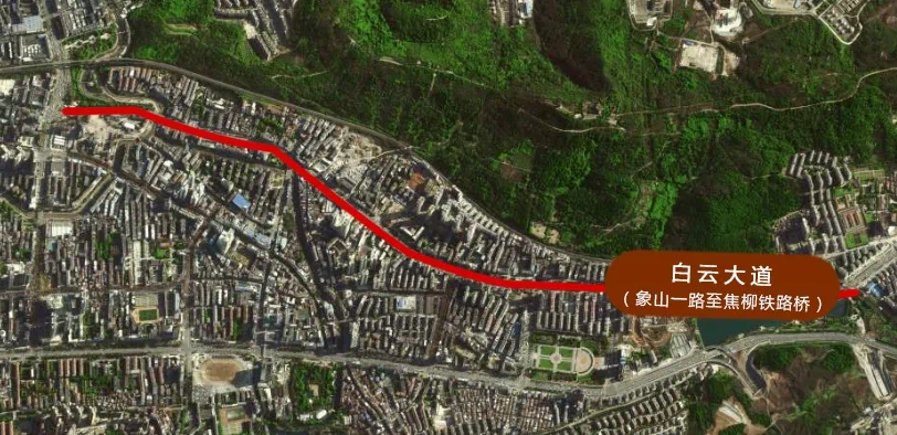 好消息! 刚刚获悉,白云大道改造工程 有了新进展! 白云大道改造公开招标 白云大道北段(象山一路—焦柳铁路桥)改造项目已具备招标条件,现进行公开招标!项目计划总投资额约4.5亿! 截图来源于网络 也就是大家熟知的虎牙关火车桥到文化宫路段,道路全长约3.58千米,红线宽40米。主要建设内容包括道路工程