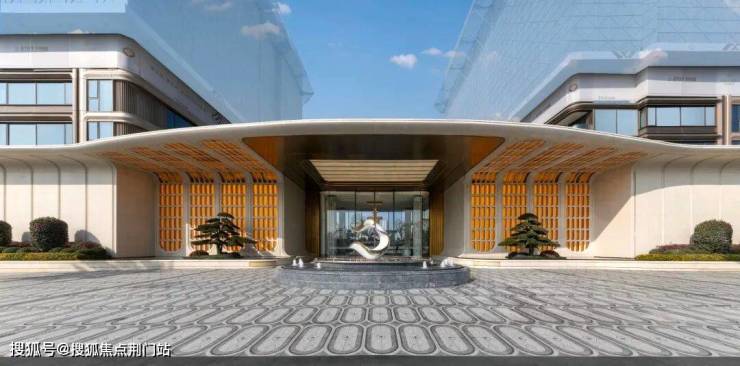 荣耀来自归家的仪式感:宽约68米的超大门头,尺度和奢阔程度都超越了市场上很多的豪宅,让业主归家的第一时间仿佛来到高奢酒店。镂空琉璃砖的织锦设计,云母石的柔和光影,造价不菲的罗汉松,走到家门口的那一刻,仿佛主角闪亮登场。