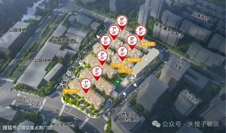 项目位于杭州城北体育公园附近,绍兴路400弄和大成巷交叉口,东邻拱墅区人民检察院。地块前身为中亚汽修,占地面积约30.26亩,总建筑面积52820.48㎡。容积率仅1.6,远低于周边小区,将打造成纯低密墅区。