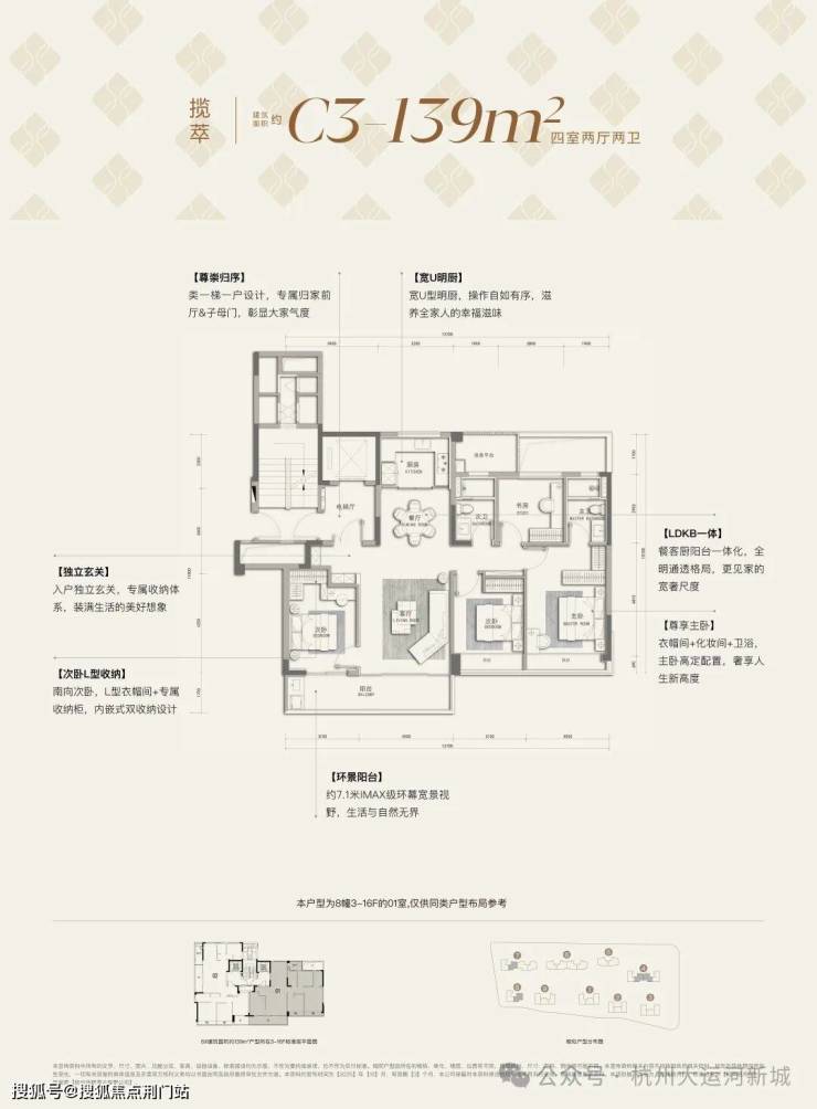熙岸晓月的这个立体门庭一定是会火爆出圈的。当然,作为杭州好房子建设的试点项目和绿城三万级产品的全新样本,熙岸晓月全维实景示范区全面打开之后,还会有更多的产品爆点等着你去发现,建面约108-111-139-168㎡的全明星组合户型也等着你去体验。