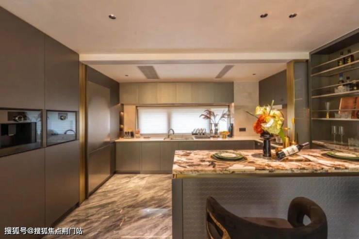 更令人惊艳的是背景墙铺装潘多拉奢石、地面铺装佛罗伦萨灰奢石、主卧卫生间铺装鱼肚白大理石,让业主在日常起居中,就能感受到触手可及的奢华与雅致。