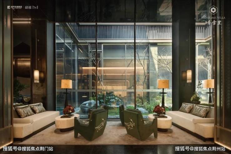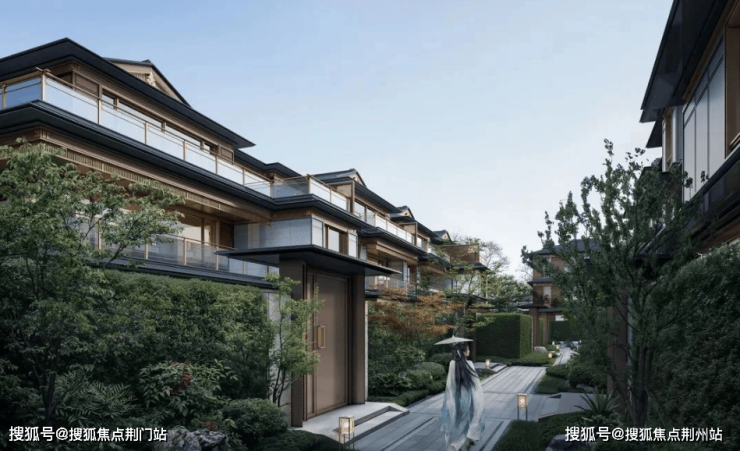 建筑立面:古今交融的诗意表达:外立面以香槟金铝板为基调,搭配蓝眼睛石材与玻璃幕墙,融合传统歇山重檐、纳福悬鱼等元素,既保留宋式建筑的对称美学,又赋予现代建筑的轻盈通透。合院组团采用三面庭院设计,L型景观面与环绕式檐廊,将超山梅影、丁山湖光引入每一扇窗景!