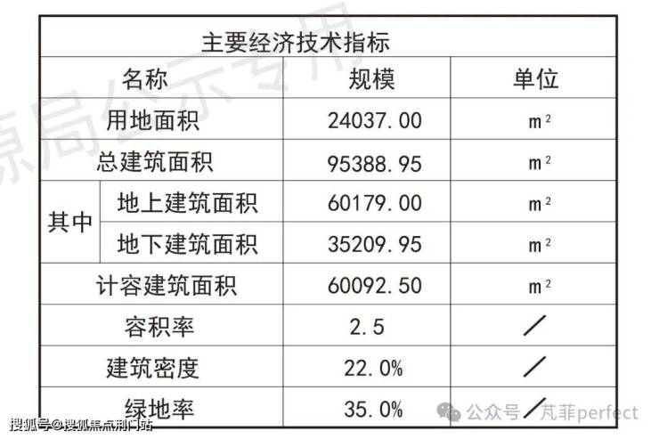 项目用地面积24037㎡,总建筑面积95388.95㎡,其中地上建筑面积60179㎡,地下建筑面积35209.95㎡。容积率2.5,建筑密度22%,绿地率35%。商业服务业与住宅建筑面积比例为50%:50%。