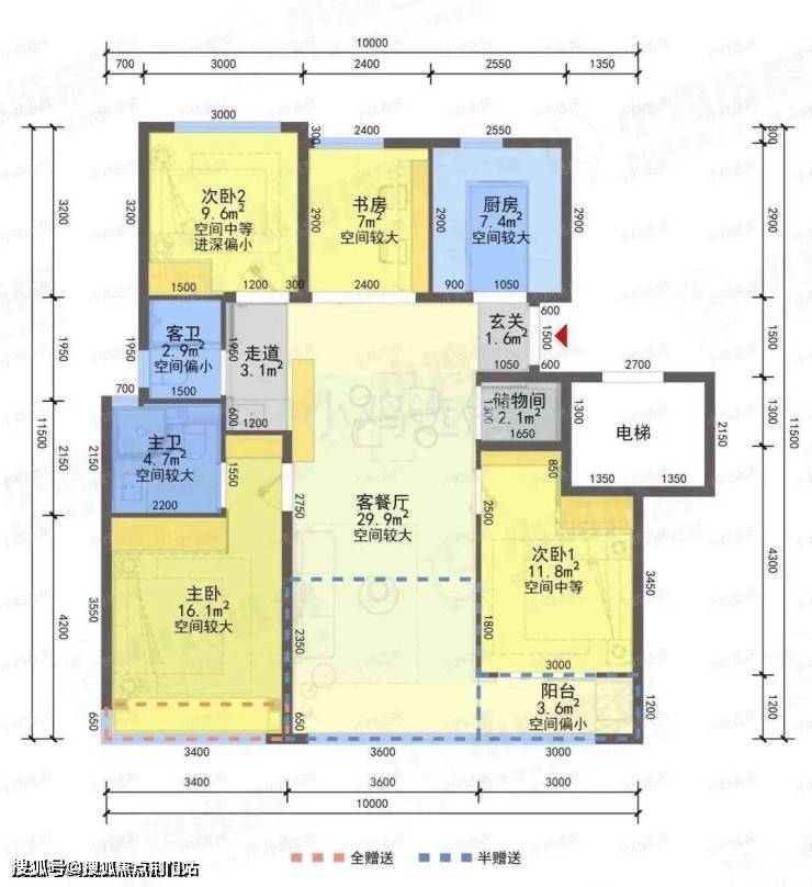 3.独立电梯厅+玄关+家政间+储物间+南向生活阳台+三卫配置,功能无死角