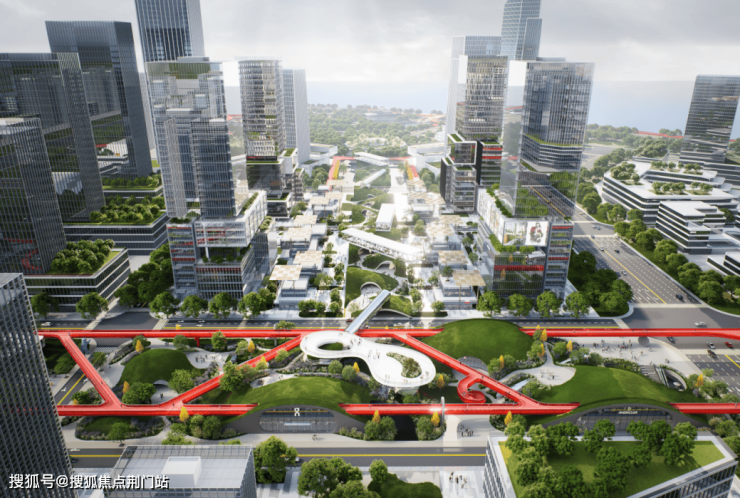 “超级十字绿轴”在设计上,加强了商业空间与公园绿地的联系,在有限的城市空间内,布置最大化的绿地,有效拉近人与自然的距离,让市民在繁华都市中也能感受到绿水青山之美。