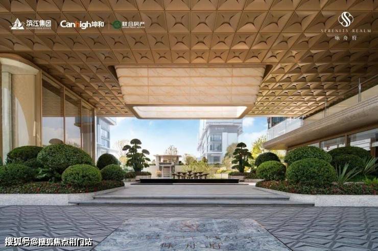 再看产品,滨江咏舟府的主入口大门高度约9.5米,整体宽度约85米,尺度不错。