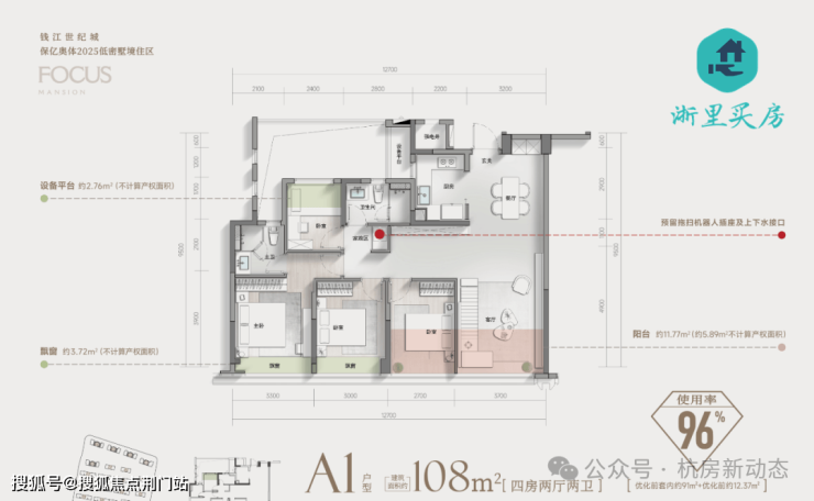 高层近100%使用空间:作为板块内少有的限价解除后的新一代高层作品,项目高层户型以优越的空间格局,实现了近100%实际使用空间,约3-3.1米层高超越同侪。