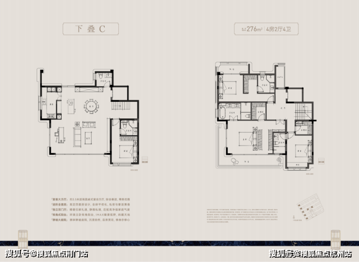 全套房设计,提升居住舒适度。上下叠各有ABC三种户型,面积在212-280平之间,且所有户型为全套房设计,主卧更是可实现“小家化”布局,家庭成员各有一方私密天地,享受更加舒适、静谧的墅居生活体验。