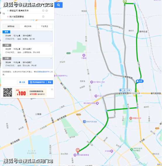 自驾路线:宸岸新月到杭州东站,百度地图