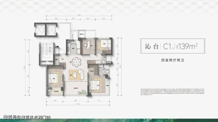 至于建面约178㎡户型,直接占据了整个小区的中轴C位,属于项目的封面楼座。3卧+餐客厅四开间朝南,南向面宽来到约16.3m。