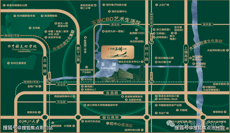 ——— 【项目基础概况】———【区域板块】:玉湖CBD艺术生活核区核心【项目地址】:余杭区·玉湖公园旁(杭行路与郁宅路交汇西约300M)【占地面积】:44914㎡【建筑面积】:112285㎡【户型面积】:建筑面积约115-185㎡【楼幢规划】:10幢【产权性质】:70年住宅