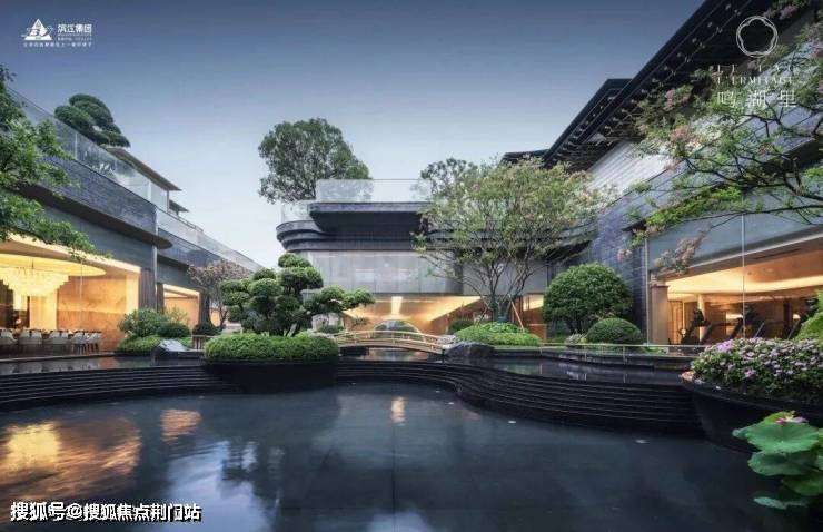 在进入园区前,鸣湖里有专属的仪式感,接四方天水纳财,在水景中注入跳跃的生命力,这些吉祥如意的祝福隐喻是中式归家独有的。