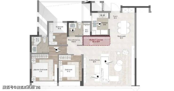 应对市场相同面积段下的产品,我们利用对封闭阳台等的计容规则变化,挖掘和提升户型产品的功能潜力,在满足置业者刚性需求的前提之下,试图提供空间多样性组合的可能,也因此赋予户型多样的居住性格。