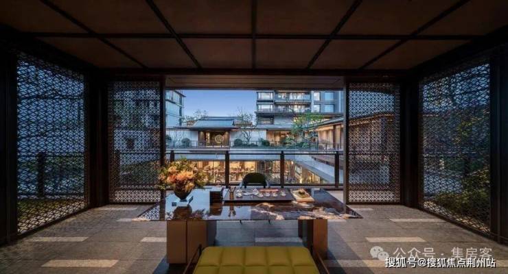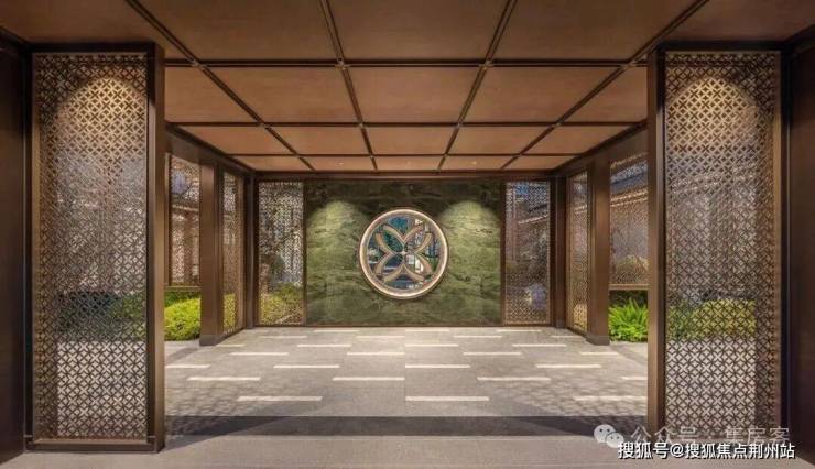 采用“王府中式”设计,大门为歇山顶形制(宽53米、高近11米),配黄铜狮、罗汉松及蓝翡翠奢石。园林融入西湖十景元素,如“花港观鱼”水景、“柳浪闻莺”绿植,并设雾森系统首层单元门厅石材铺就,肌理沉稳。