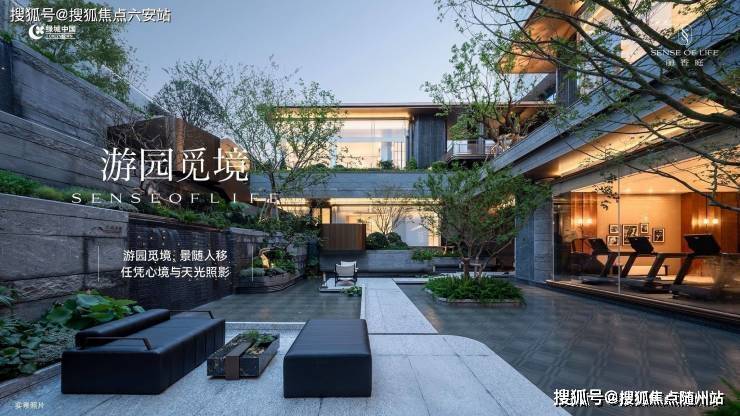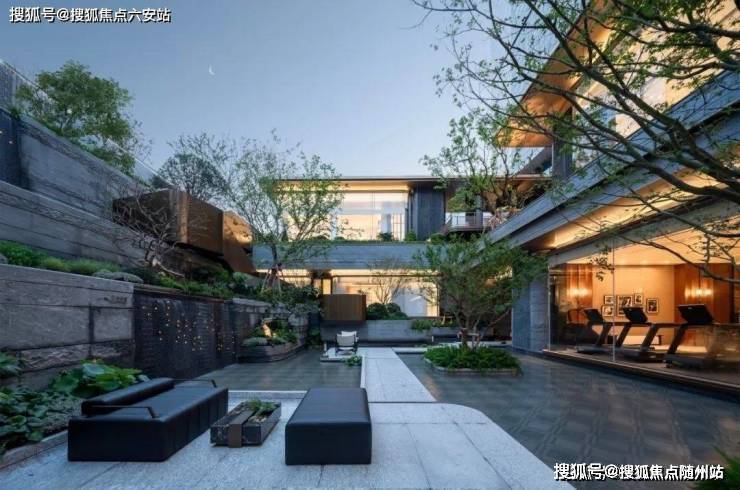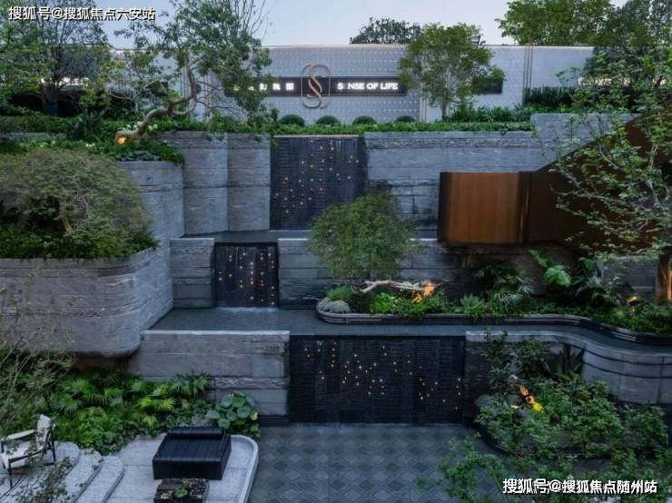 小区最大亮点是打造了下沉式庭院与下沉式会所,位于生活馆与后场庭院之间,打造超7.5米的高差的台地花园。运用三层叠水、四季花木、无边水池等多种造景手法,自然气息扑面而来。这种立体游园设计,使地上地下皆成庭园,让业主每次归家都成为一场心灵旅行。