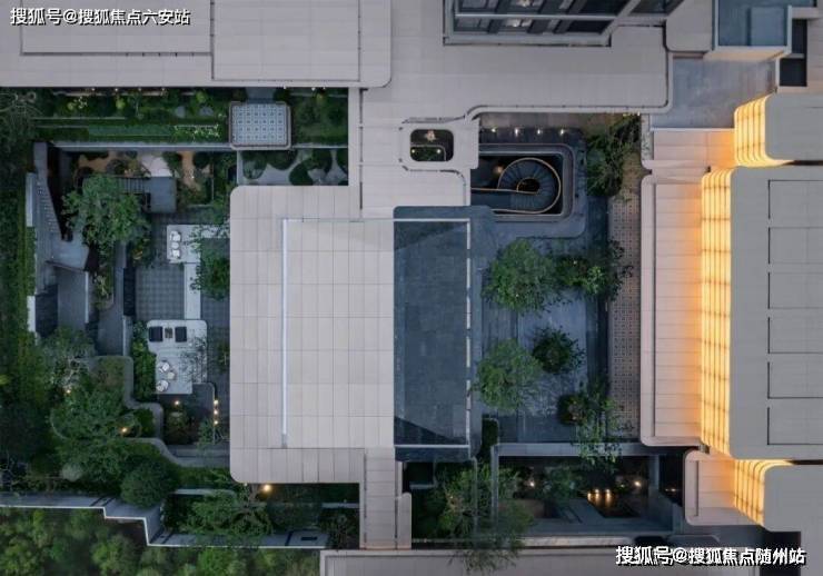 项目以“庭园一如”为设计内核,通过立体高差重构场地肌理,将功能空间与园林景观融为一体,营造庭间有园、步移景异的游园“叙事感”。园林设计采用全风雨连廊,串联“两心六组团”景观园林,打造林下花园、台地花园、特色叠水等景观节点。