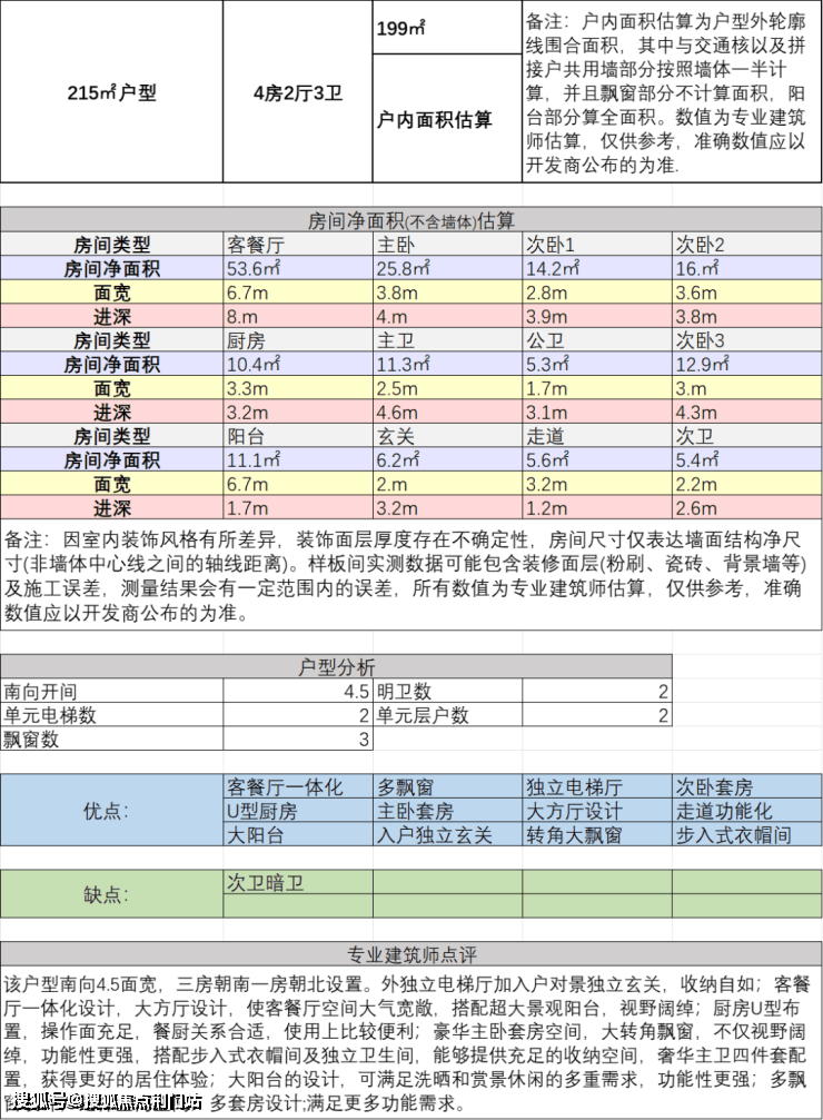 4、还有一款最大户型建面约215方4房2厅3卫: