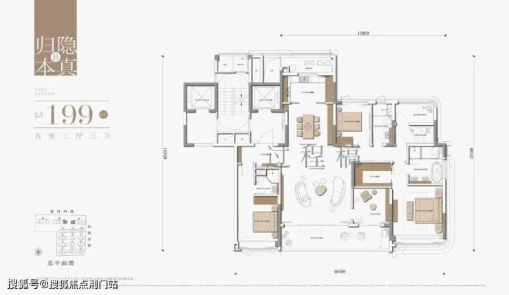 高层169㎡户型设置转角飘窗,观景面达7.2米,可俯瞰中央水景与联排区景观。