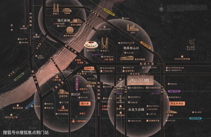 杭州滨江兴耀·松川境府坐落于奥体南·市北西板块,地处建设四路与金鸡路交汇处东侧,占据杭州“拥江发展”战略下的黄金十字轴。