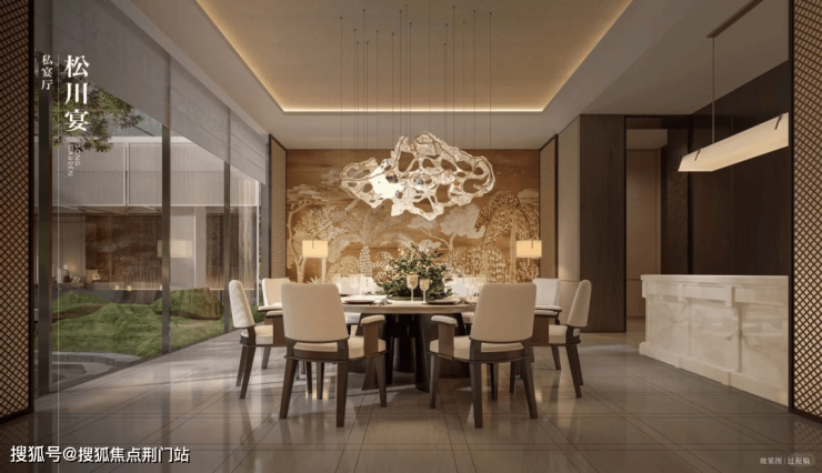 松川境府的设计灵感源自北宋范宽《溪山行旅图》,以“山水有相逢”为核心理念,将传统山水画的意境转化为现代居住空间的语言。