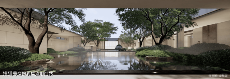 景观设计由北京顺景园林操刀,以“溪山行旅”为叙事主线,打造“归林-观山-临水-栖谷”四重景观序列,中央水景池底镶嵌《溪山行旅图》局部浮雕,实现文化符号的沉浸式植入。
