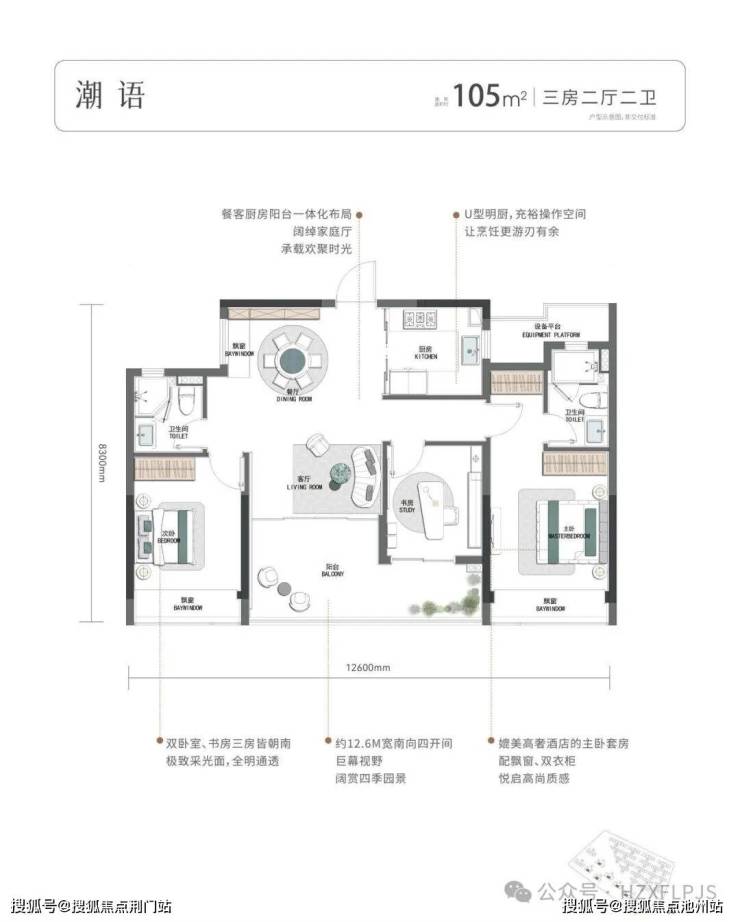 揽景小高层建筑面积约105-130㎡,为最大化景观面,突破性设计建筑面积约105㎡南向四开间。