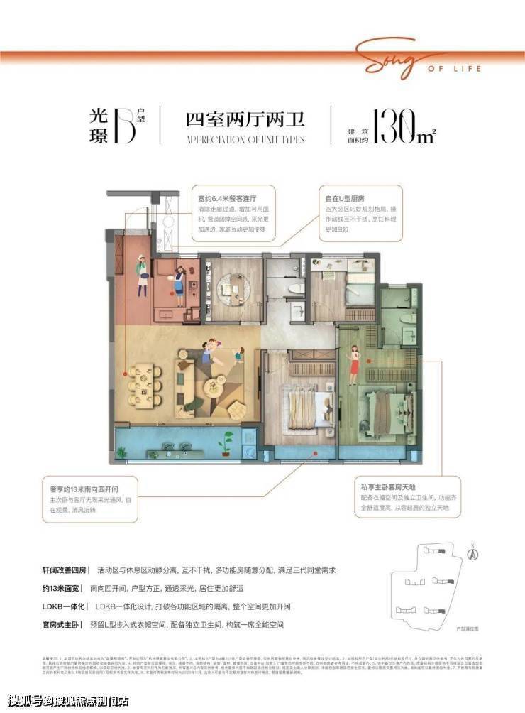 约106㎡户型点评:双联阳台约6.7米面宽,加设L型俯景面,满足晾晒、赏景、采光三重需求,LDKB一体化设计,打破各功能区域的隔离,整个空间更加开阔,开放式厨房 U型厨房,封闭敞开随心切换,高效台面设计,操作动线更加合理