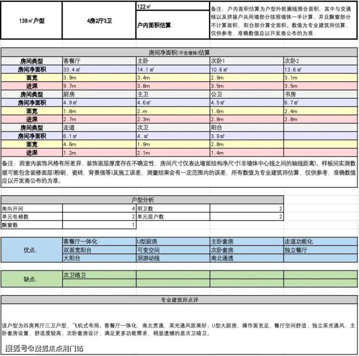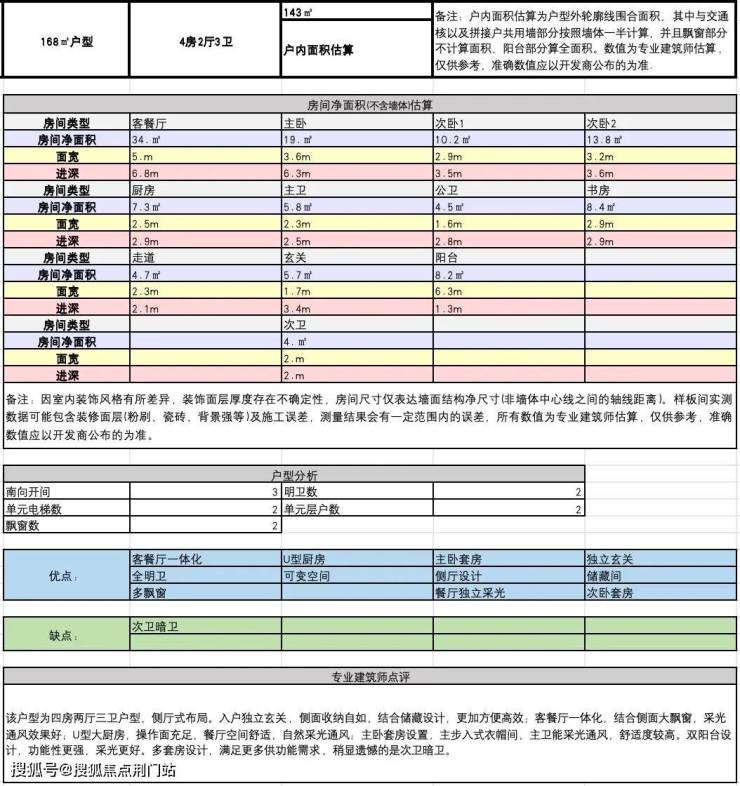 另外,小胖已掌握了项目建面约139-188方户型图,并第一时间做了评测。