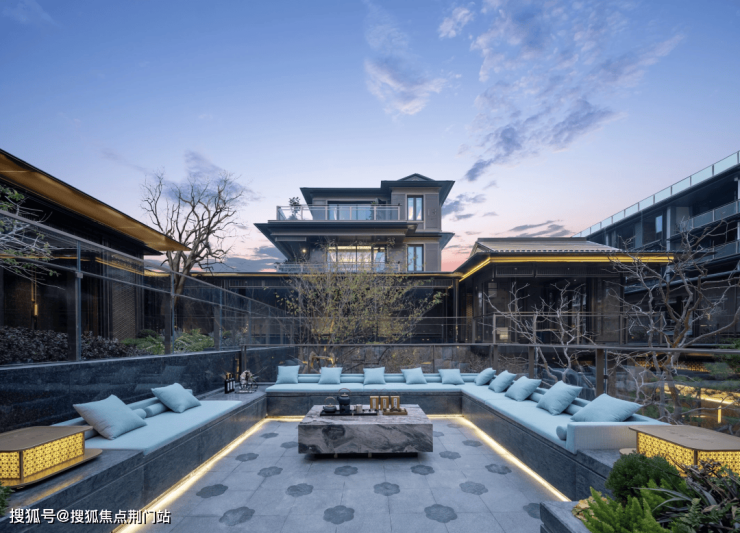 再融合传统合院的歇山重檐、寓意福瑞的纳福悬鱼、古朴典雅的黛墨青瓦,以及错落有致的瘦金披檐、翠意盎然的怀翠亭、依山傍水的倚山阁等经典元素,现代建筑中注入古典东方文化的精髓,营造出一幅古今交融的和谐画卷。