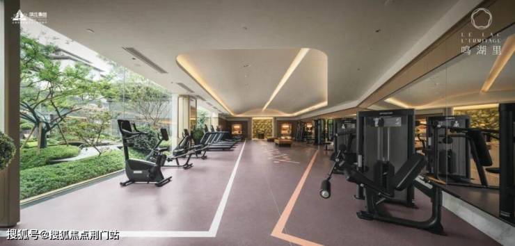 室内,奢材、非遗等豪装同样辉映山水,比如健身房的绿野仙踪造景、室内泳池手工拼接的“湘湖月夜”背景墙、瑜伽室的水波纹立面背景等设计,生活化地内敛了鸣湖里的矜贵。