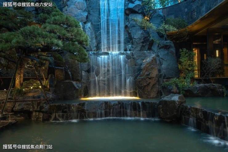 利用高差优势,安云玖院匠心营造一座7米高浓缩山林、溪涧、叠瀑于一体的“立体山峡”中庭景观。整个景观庭院全奢石铺就,没有一块砖!飞瀑旁一棵斜飘式进口黑松“旭日龙鳞”,树龄300年价值200万,更有进口龙梅、羽毛枫、杜鹃球等一同构成 “门庭名树群落”,为业主营造极为尊崇的归家威仪!