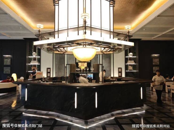 最后再看一张行政走廊的水吧吧台,除了看造型,我们还要仔细看看它的吊顶用材、地面石材,非常考究,我还是建议你们实地去看看。