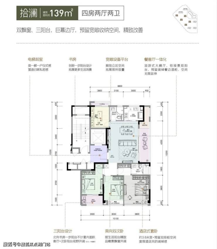 约139㎡户型,采用少见的南北3阳台+LDK一体化边厅。主次卧都有双排柜空间,客厅预留餐边柜,每一处都融入设计与巧思。