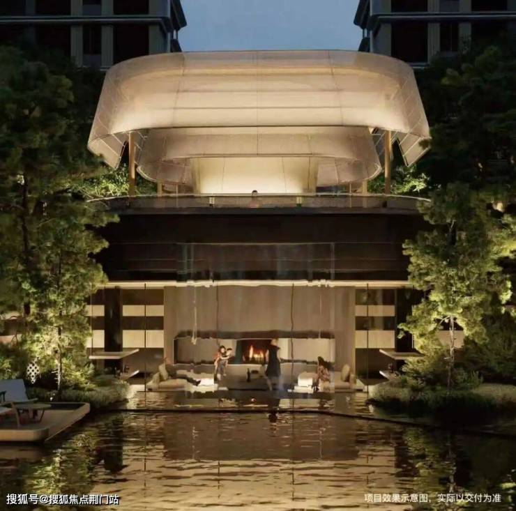 它还不仅仅是大门,楼上就是业主客厅,一面朝着城市街道,一面朝着庭院景观——大面的溪流水系、瀑布,还有一个个廊下卡座,就铺展在眼前。