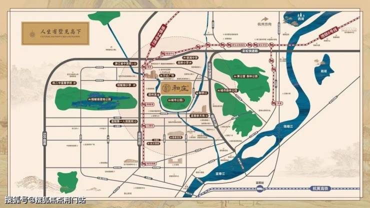 翠璟和庄位于杭州“六小龙”密集的城西科创大走廊的南翼。这里,不仅是富阳“融杭”的桥头堡,更是宜居宜业的理想之地。一面是直线400米的地铁6号线阳陂湖站与万达广场的繁华烟火,另一面是黄公望森林公园、阳陂湖湿地的自然静谧。这种“大隐隐于市”的居住哲学,正是翠璟和庄对城市圈层的深刻理解。