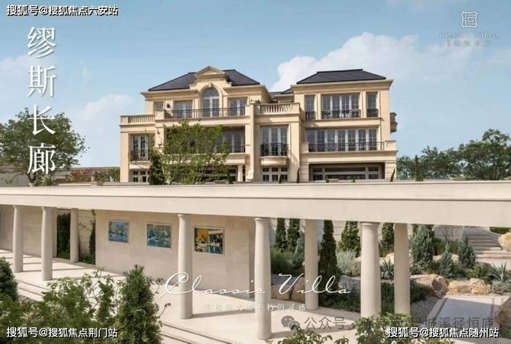 1. 色调纯净,度假美学:立面以浅暖米黄石材为底,点缀金属、玻璃,焕新法式奢华艺术气质。罗马柱与宝瓶柱阵列、隽永雕花,凝练地中海浪漫神韵,恢宏典雅。